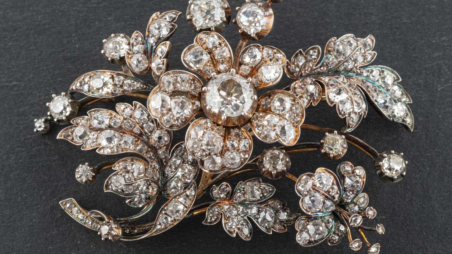 The wearing of naturalistic jewellery depicting identifiable flora or fauna became popular during the Romantic Movement of the late 19th century. In our up and coming Silver & Jewellery sale on 16th & 17th May we have several good examples of this kind of naturalistic jewellery, including lot 3342 - a fantastic spray of wild roses, symbolising love, grace and joy which would have been worn as a bodice ornament, estimated at £3000-5000.