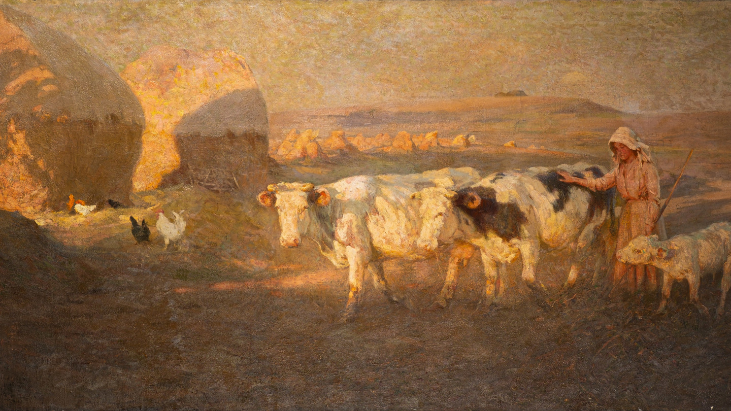 One item which on its own would warrant a visit to the salerooms is lot 654, a gorgeous, soporific sunlit evening landscape scene with a maiden herding cattle, by Frederick Hall (1860-1948). Hall painted on a splendid scale, this canvas being almost two meters wide -similarly expansive views have sold very well previously. This entrancing example is projected to fetch in the region of £6000-9000.