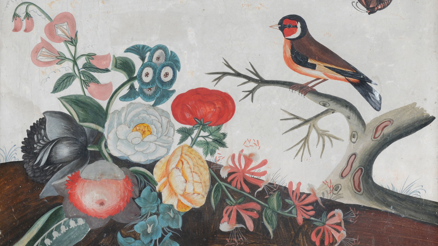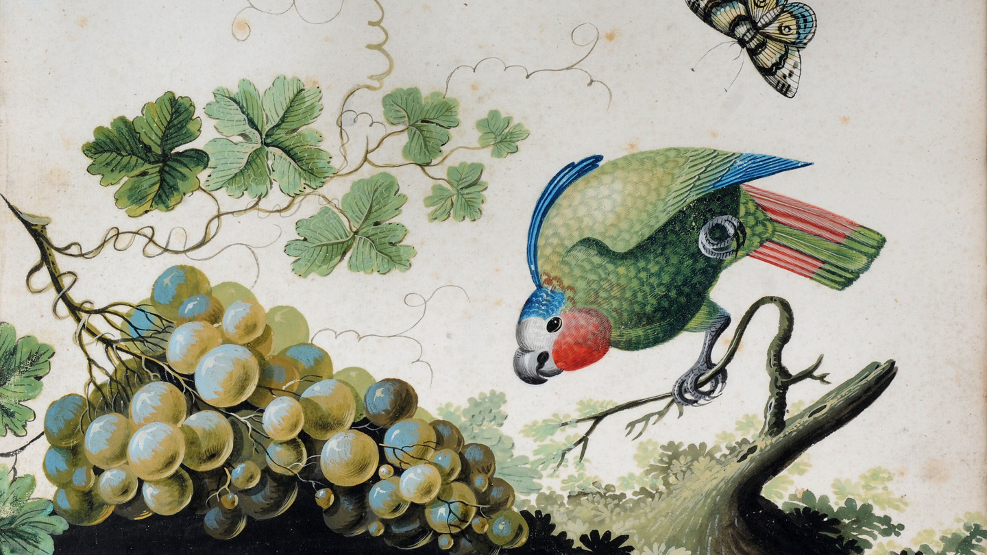 A native of Dublin, Samuel Dixon was made famous by his sets of embossed bird and flower pictures which he produced in the 1750’s from his Capel Street premises in Dublin. He used a technique known as ‘basso relievo’ whereby parts of the design were raised by means of a copper plate and then coloured in gouache. The advantage of painting in gouache can clearly be seen as the opaque colours, which were ground in water and thickened with gum and honey, fade very little. In consequence, the decoration is often surprisingly vibrant and fresh considering 300 years have passed since they left Ireland. Dixon’s pictures were a great success at the time and were often purchased by the ‘nobility and gentry’ and in addition they were popular with ladies who imitated them in needlework.